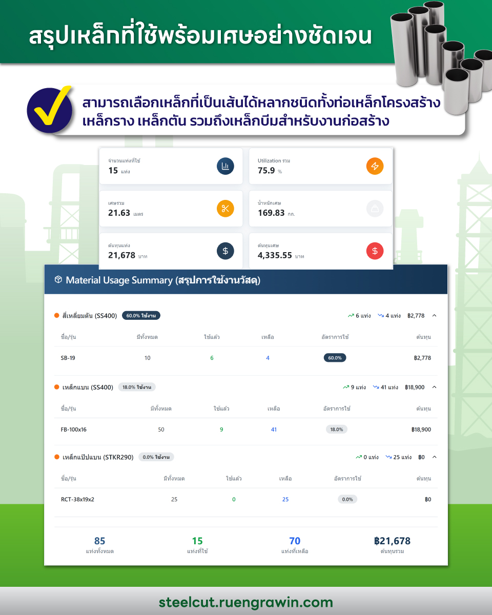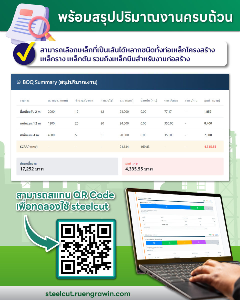 ลดข้อผิดพลาดจากการคำนวณงานตัดเหล็กทรงยาว แค่ใช้ "STEELCUT"