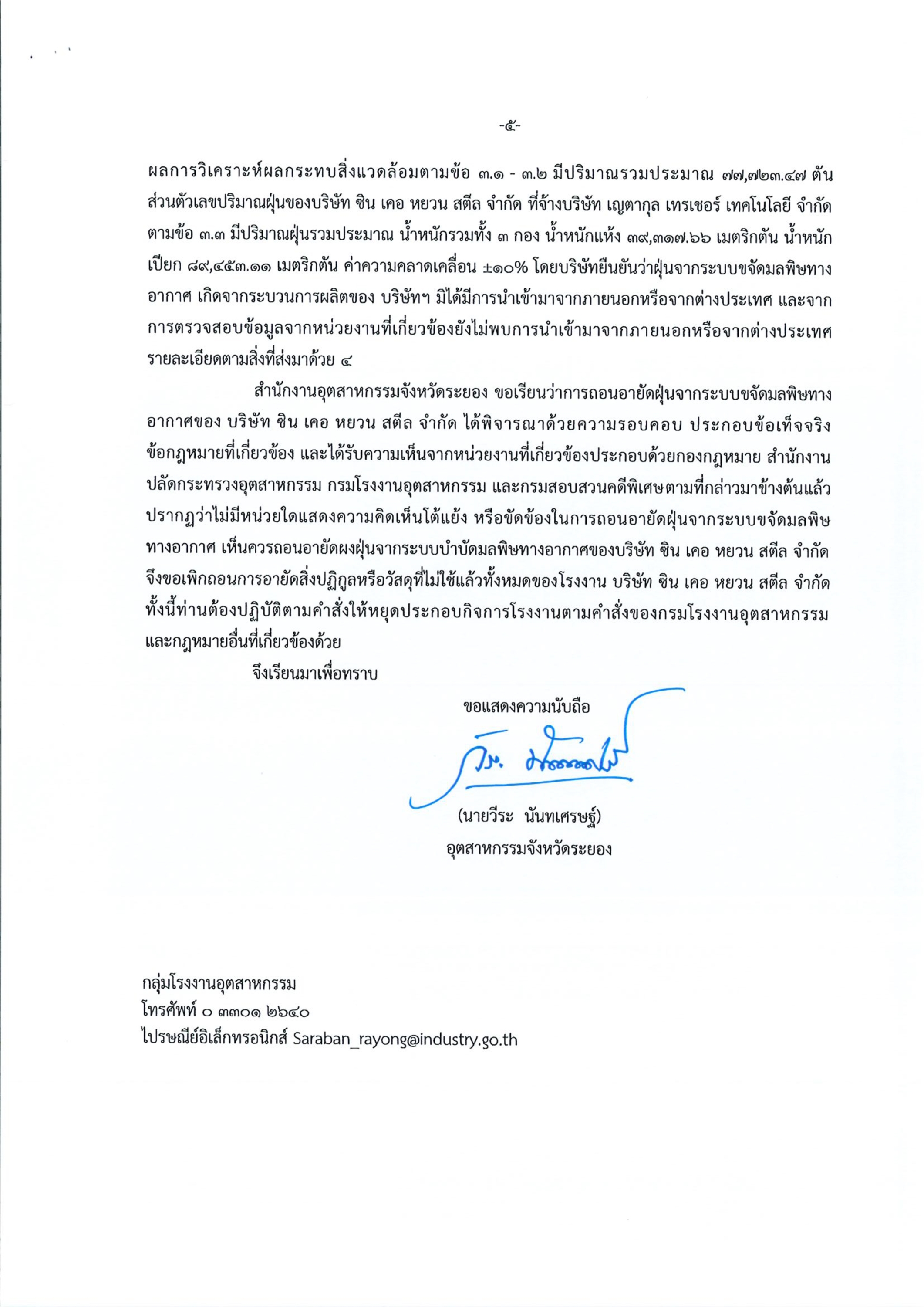 เพิกถอนอายัด "ฝุ่นแดง" บ. ชินเคอหยวน จำนวน 7.7 หมื่นตัน