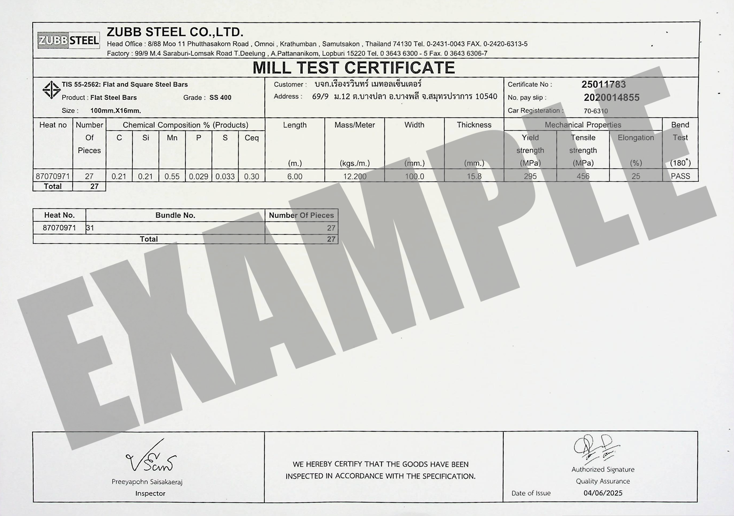 เหล็กแบน 100 * 16 มม *6.0 ม รีด มอก zubb